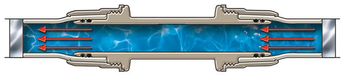 Zaradi konične razširitve cevi pri izdelavi spoja se močno povečajo pretoki v instalaciji in sicer: