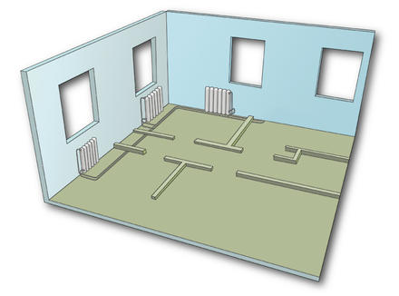 - redko ustrezna rešitev pri obnovah, saj moramo cevi speljati pod podom.